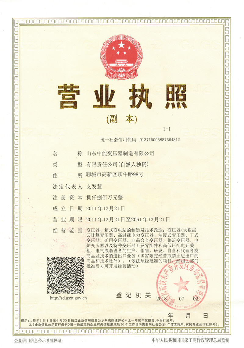 荣誉资质_福建中能变压器厂家